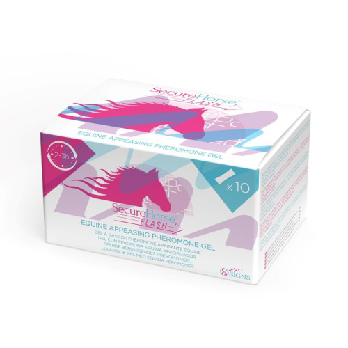 Secure Horse Flash to preparat zawierający syntetyczne feromony końskie, które mają na celu obniżenie poziomu stresu u koni w trudnych sytuacjach – zawodach, transporcie, nowym środowisku. Stosowanie produktu jest bardzo proste: zawartość saszetki należy podzielić na pół i zaaplikować do obu dziurek nosa konia. Co ciekawe, jedna saszetka okazała się bardziej wydajna niż zapowiadał producent – w praktyce wystarczyła połowa zawartości na jedno wydarzenie.